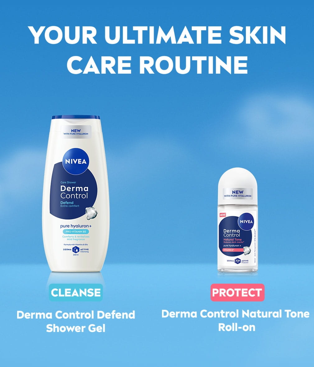 Experience visibly brighter and even-toned underarms with NIVEA Derma Control Eventone Roll On. Formulated with Pure Hyaluronic Acid and Vitamin C, this 0% alcohol roll on strengthens the skin’s defense against irritation while helping to brighten underarms in just 5 days. Its advanced Derma 72h Odour Protection keeps you feeling fresh and confident all day long.
